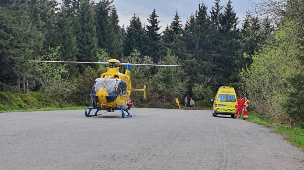 V Orlických horách zasahoval vrtulník kvůli těžce zraněné cyklistce bez přilby