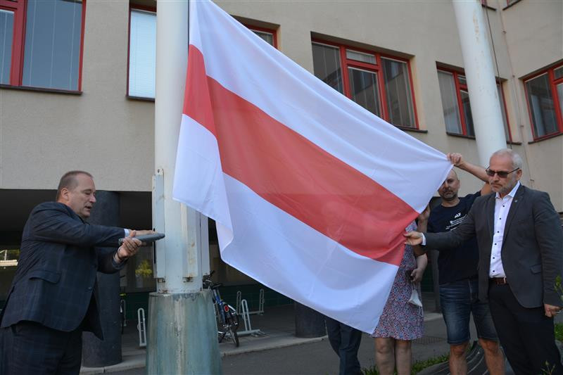 Hradec vyvěsil běloruskou vlajku, chce upozornit na důležitost dodržování lidských práv