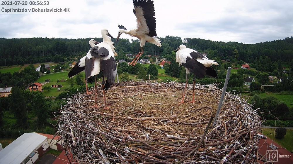 Mláďata čápů z Mladých Buků už vylétají z hnízda. Přikrmování končí