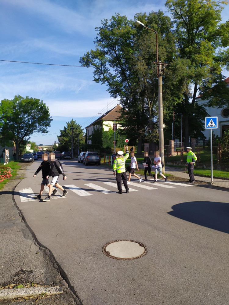 Policisté dnes hlídkovali na přechodech a informovali, jak bezpečně přecházet