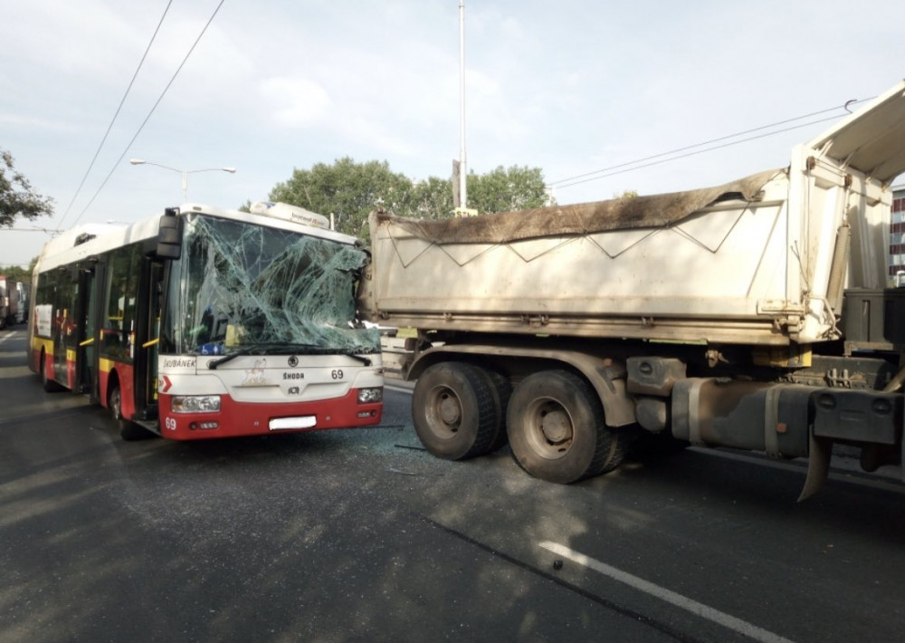 V Hradci boural trolejbus, srazil se s náklaďákem. Jeden cestující skončil v nemocnici