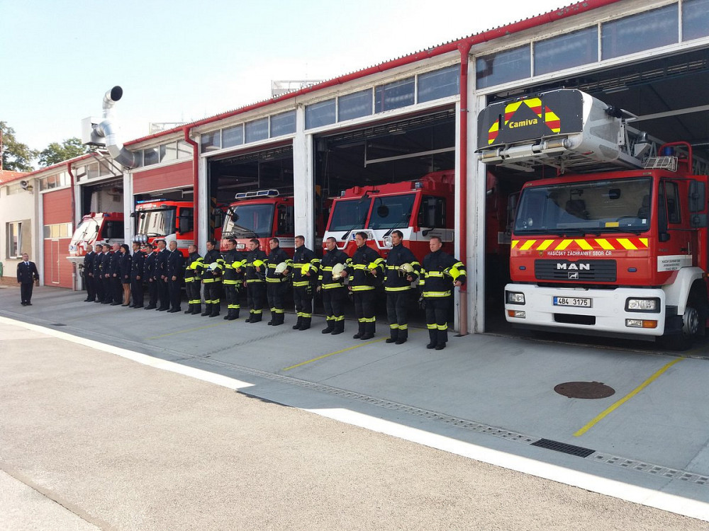 Černé vlajky, nastoupené jednotky. Hasiči uctí památku kolegů, kteří zemřeli při výbuchu rodinného domu