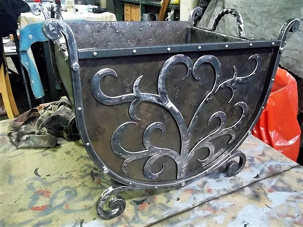 Práce Pavla Vágnera a jeho týmu: Kovaný kozlík na dřevo ke krbu