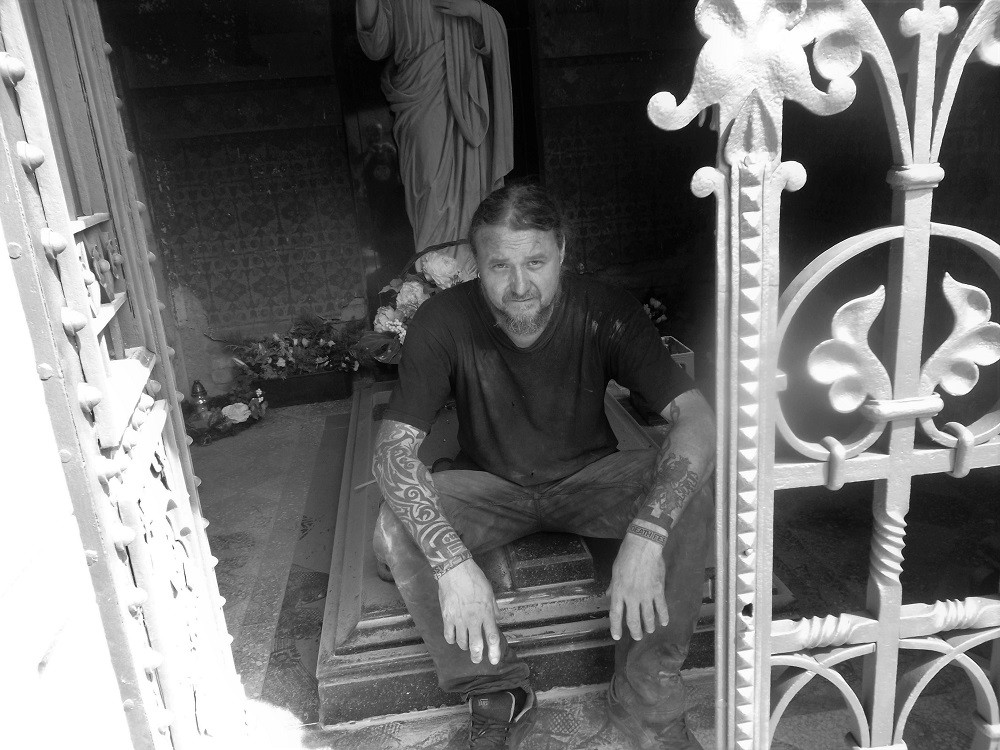 Pavel Vágner při restaurování rodinné hrobky továrníka Klazara a jeho choti v Novém Bydžově