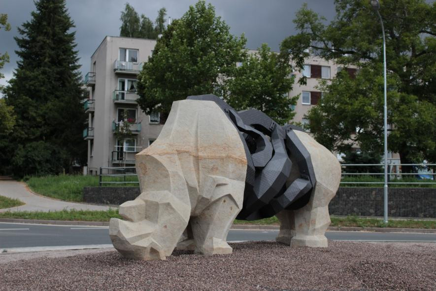 Socha Sudána na okružní křižovatce ve Dvvoře Králové nad Labem