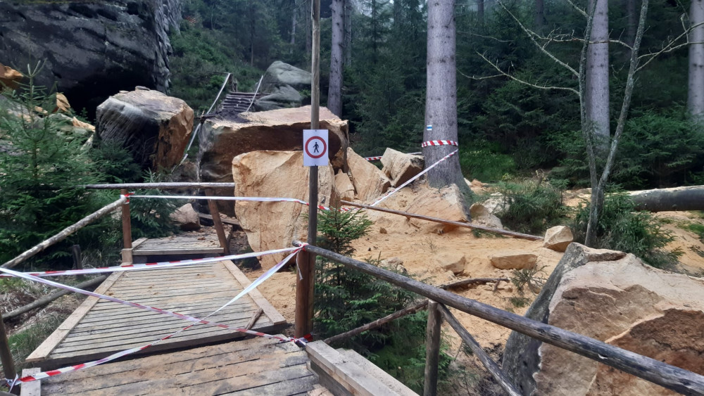 V Teplických skalách se utrhl pískovcový blok a spadl na turistickou cestu