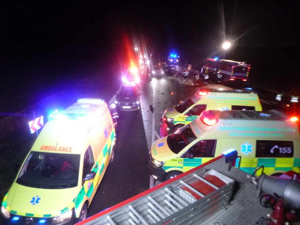 Při nehodě u Dobrušky se zranilo pět lidí. Všechny si převzala záchranná služba
