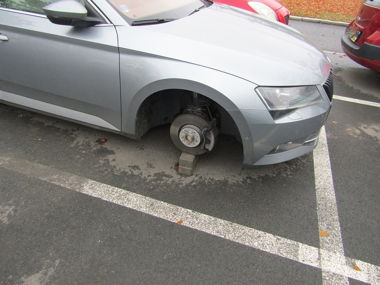Tři auta na špalkách. Výsledek nočního řádění zatím neznámého zloděje v Trutnově
