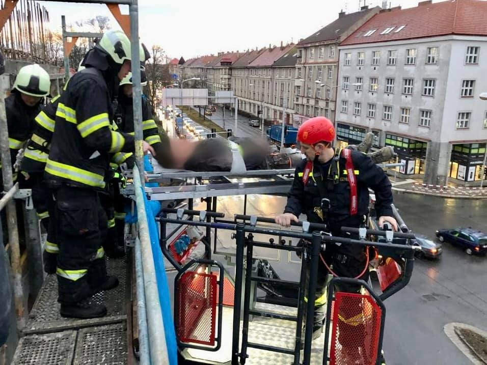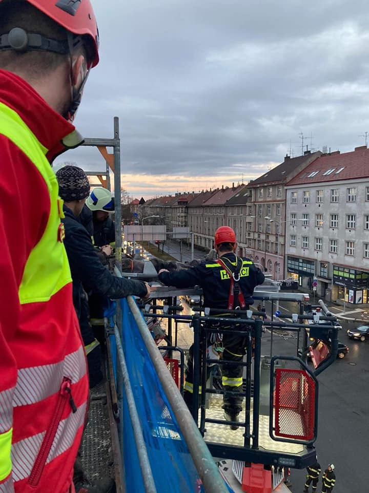 V centru Hradce se včera zranil dělník na lešení v pátém patře. Zasahovali záchranáři i hasiči