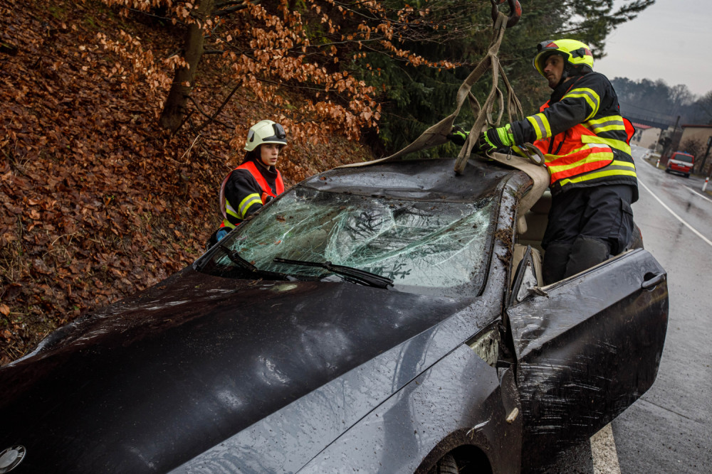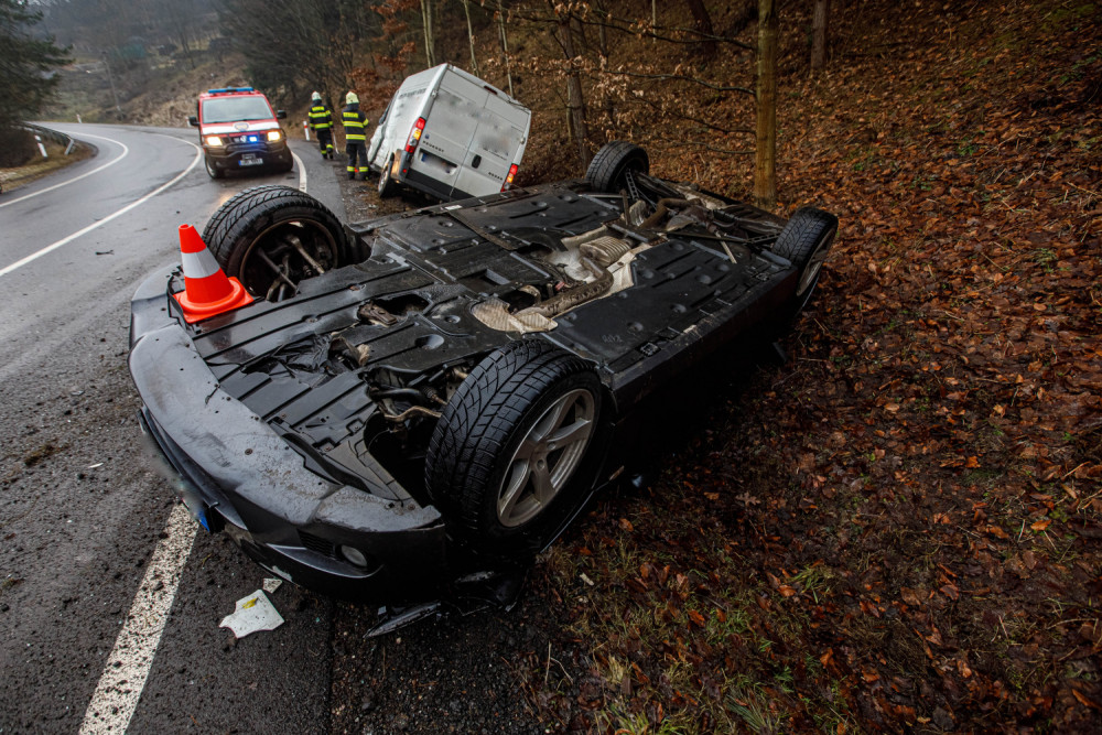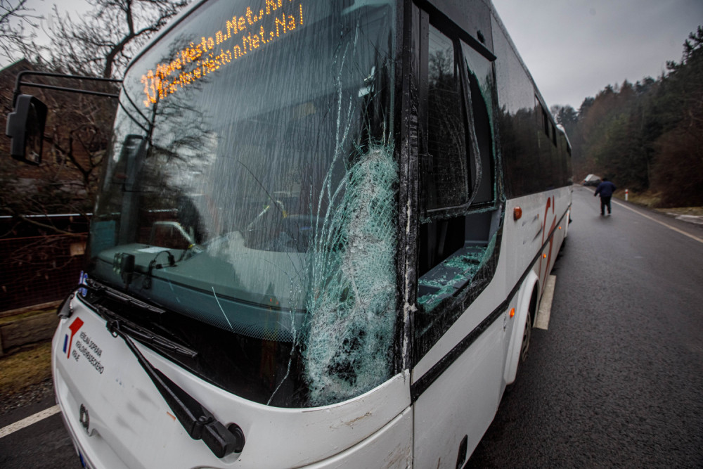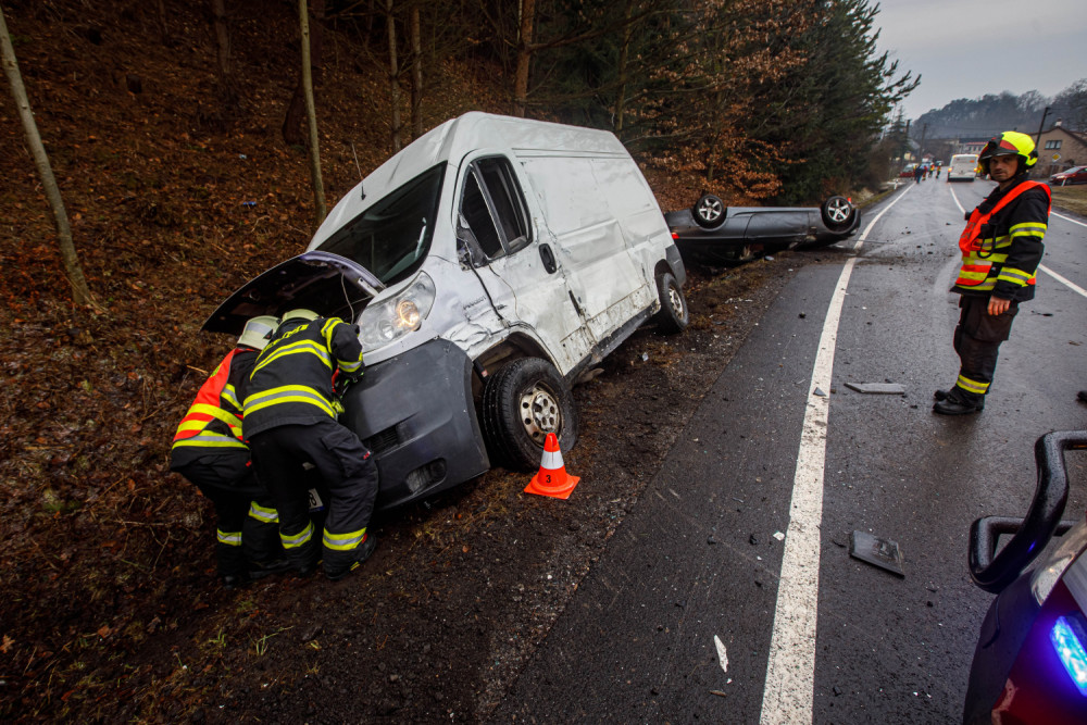 Ledovka jako příčina nehody ve Vysokově. Střetl se tu osobák, dodávka a autobus