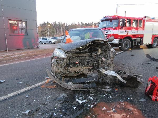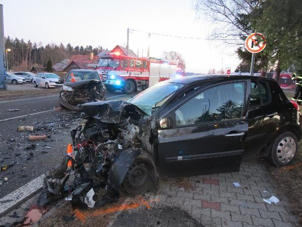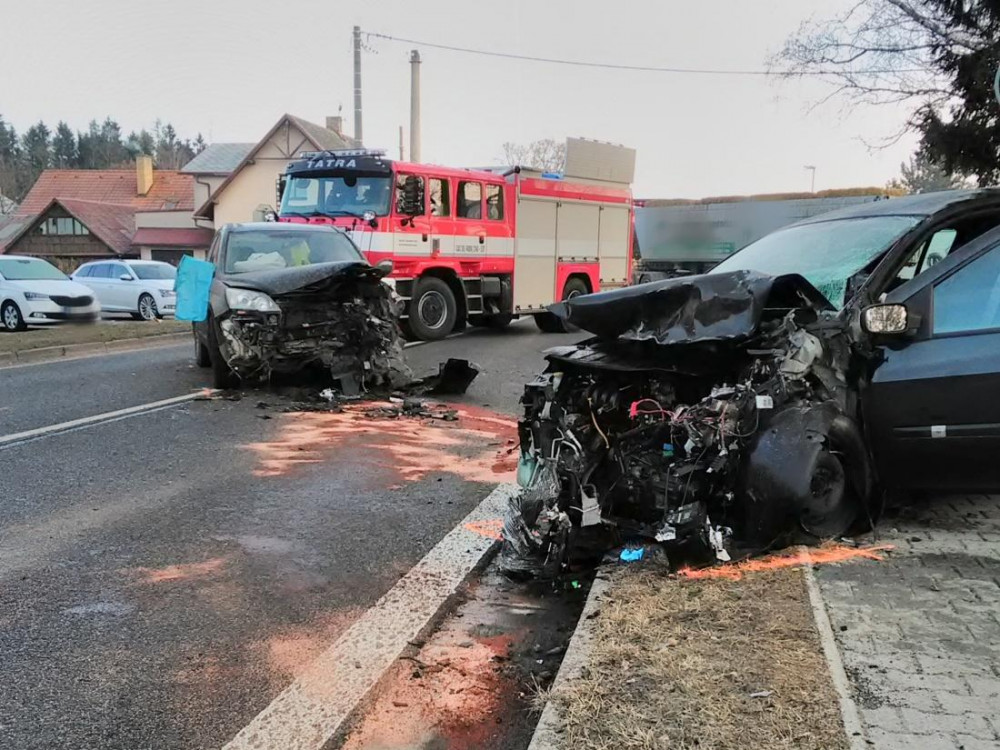 Čelní střet dvou aut zastavil dopravu v Nové Pace. Oba řidiči skončili v nemocnici