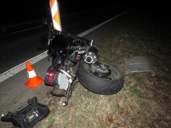 Motorkář nezvládl svoji motorku. Spadl přímo pod kola protijedoucího vozu