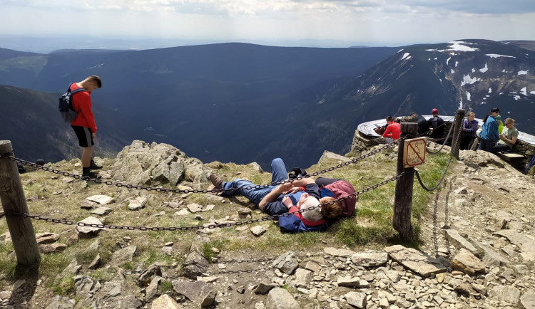 Cestu na Sněžku olemuje zábradlí. Při stavbě chodníku bude asistovat vrtulník