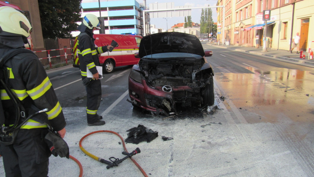 VIDEO: Na třídě Karla IV. vzplálo auto. Škoda byla vyčíslena na 170 tisíc korun