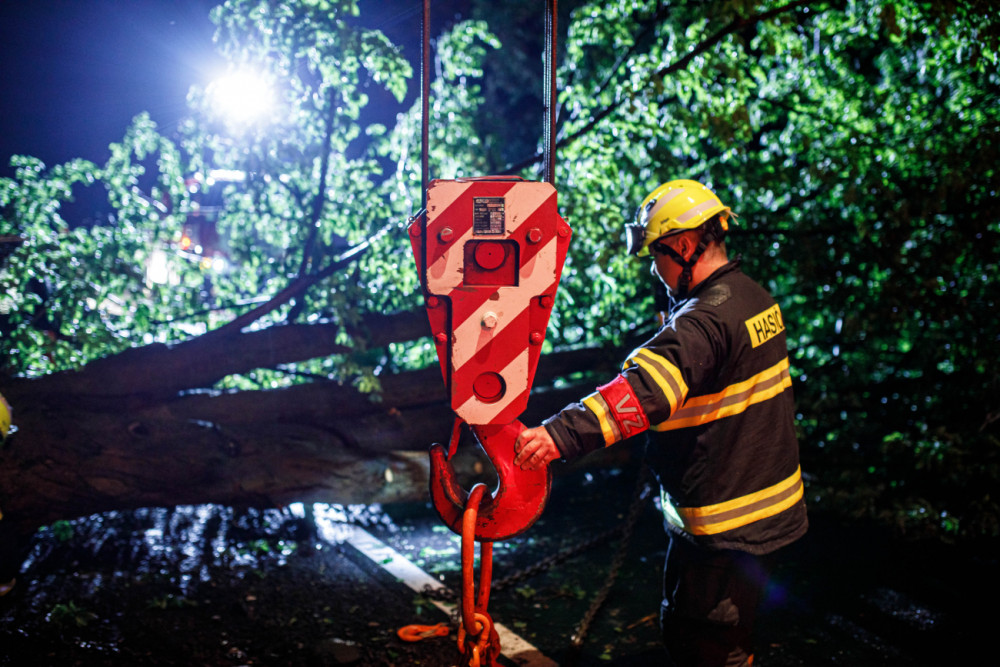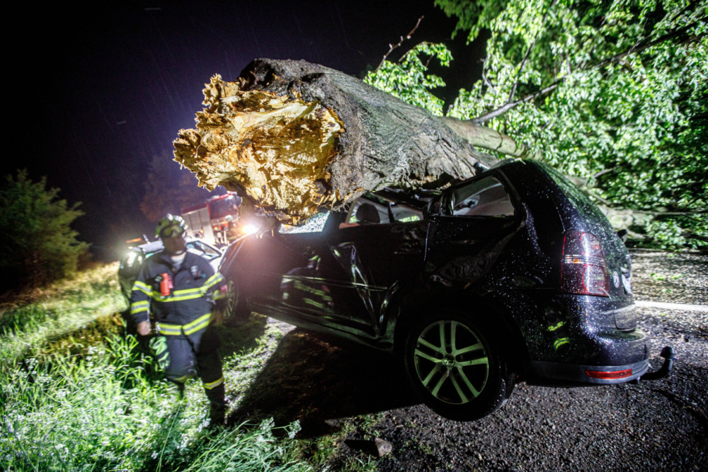 Přes noc měli hasiči plné ruce práce. V Dobrušce spad na auto strom