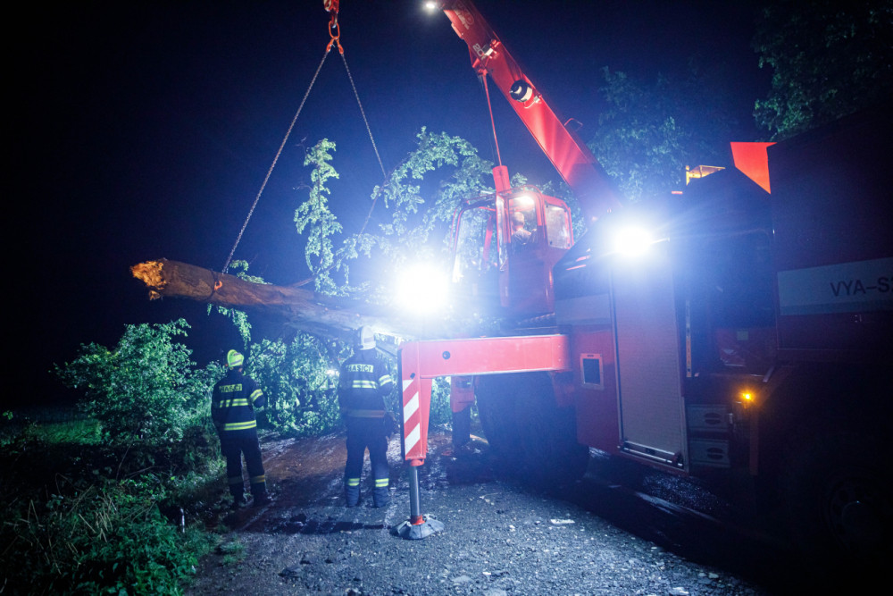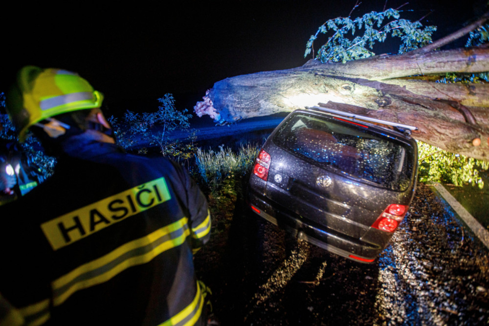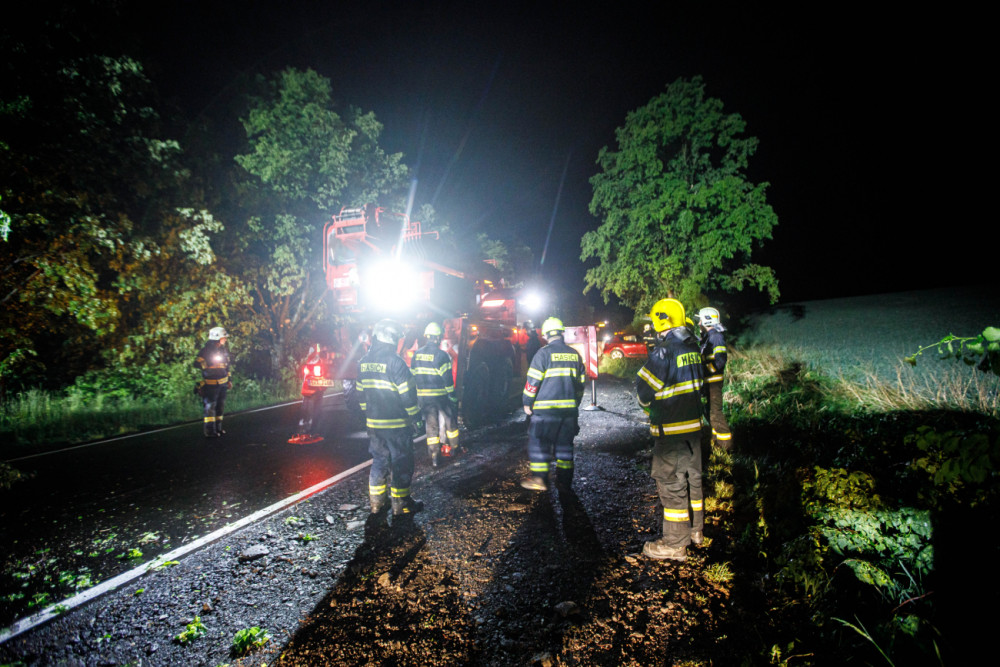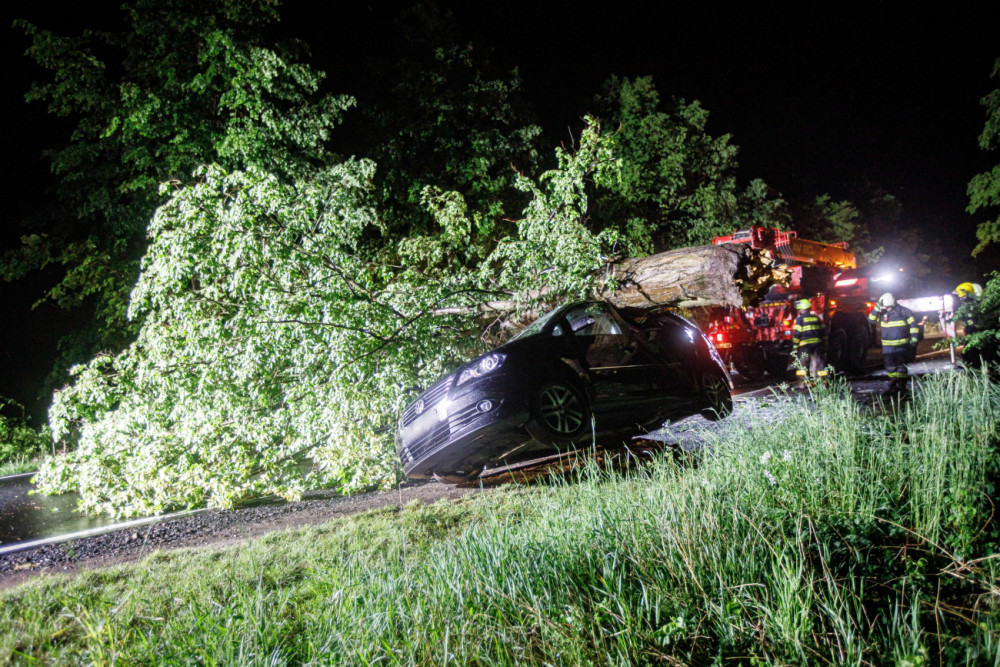 Přes noc měli hasiči plné ruce práce. V Dobrušce spad na auto strom