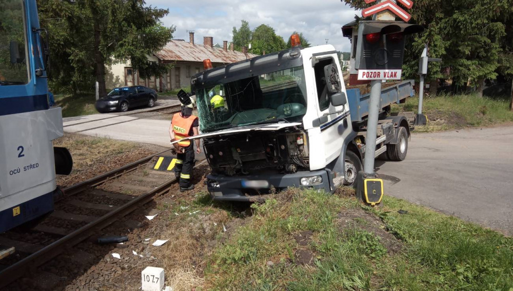 Na Trutnovsku se střetl vlak s nákladním autem. Řidič vozidla je v péči zdravotníků