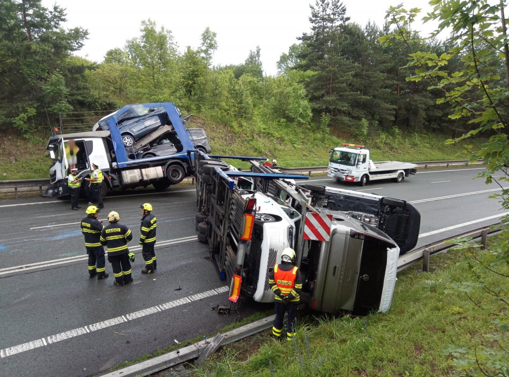 Z kamionu se vysypala nová auta. Dopravní nehoda uzavřela hlavní tah na Náchod