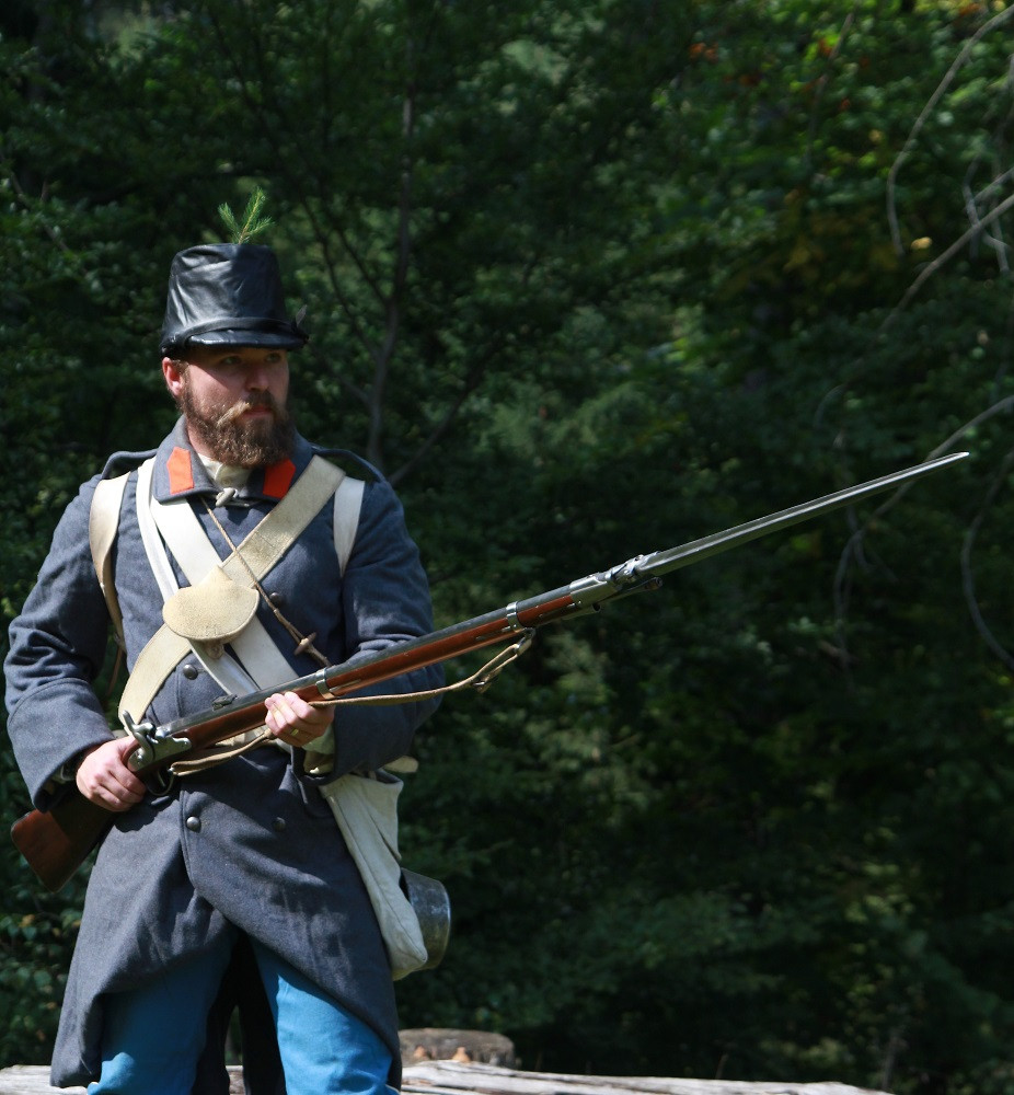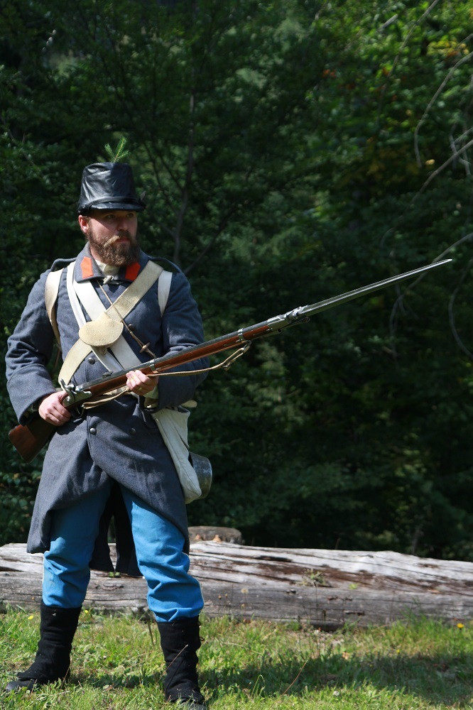 Matouš Holas v uniformě řadového pěšáka rakouské armády, kterou sestavil v ideální kopii