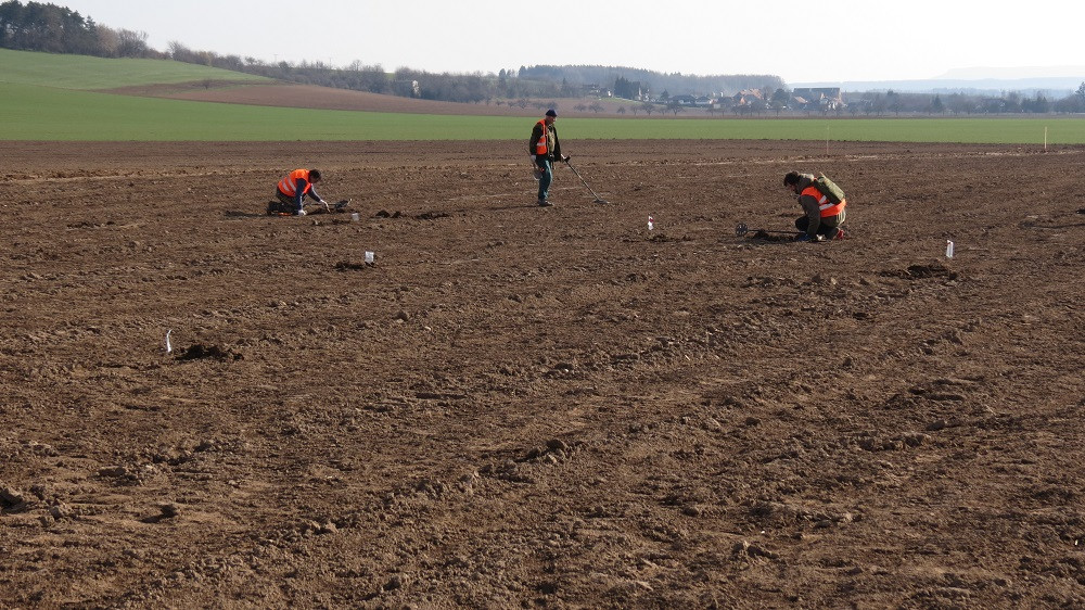 Pracovníci s detektory kovů na bojišti u Svinišťan