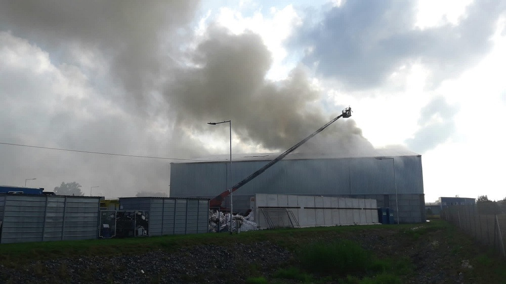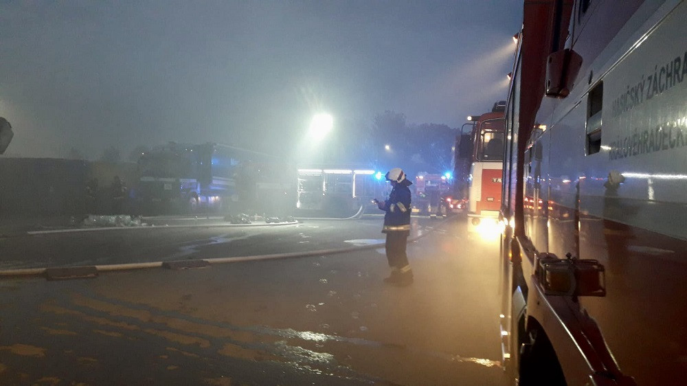 V Hradci Králové na Slezském Předměstí hořela hala s odpadem. Zásah potrvá ještě několik hodin