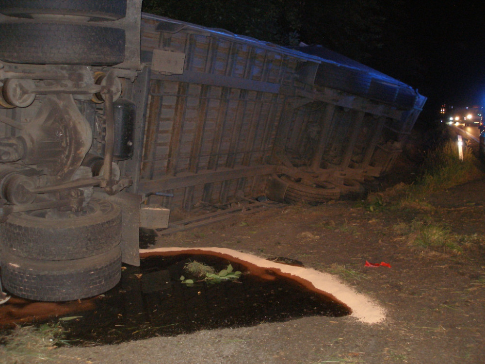 Nedaleko ČKD se v noci převrátil náklaďák, tekla z něj nafta