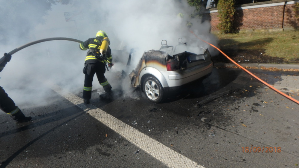 Na Rychnovsku kompletně shořelo Audi, příčinou byla technická závada