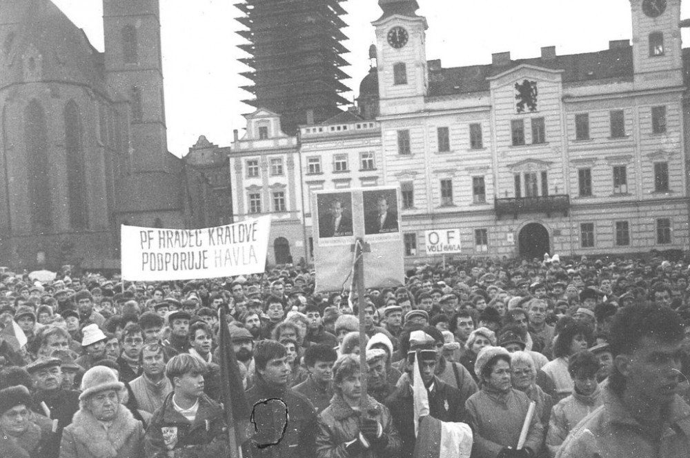 V Hradci Králové se revoluce naplno rozjela až o tři dny později. Komunismus se vytlačoval postupně