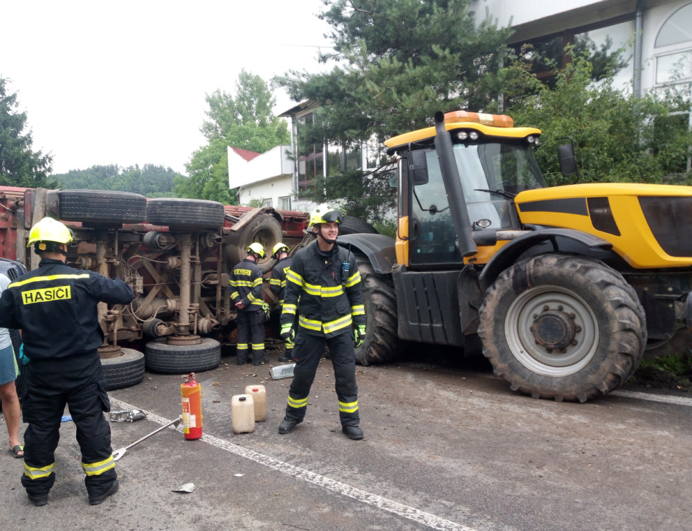 Nehoda auta a traktoru na okraji Náchoda čtyři hodiny blokovala silnici I/14.