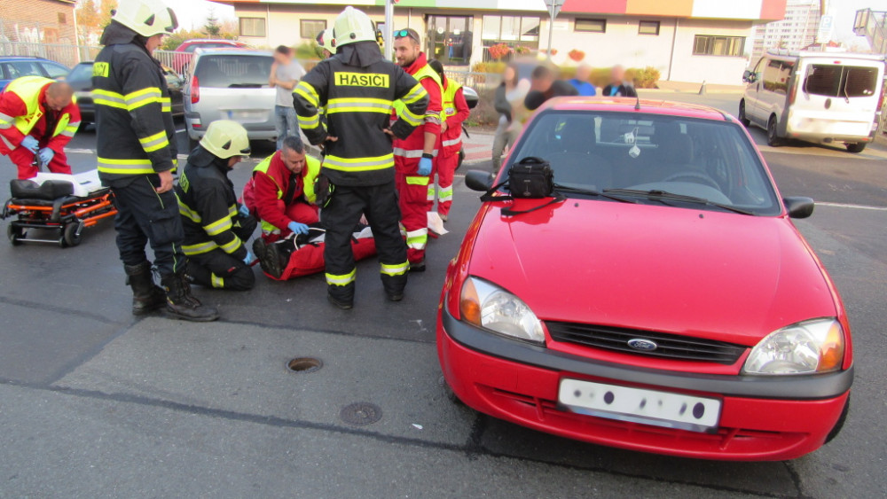 Srážka motorky a osobáku skončila zraněním, motocyklistu odvezli do nemocnice