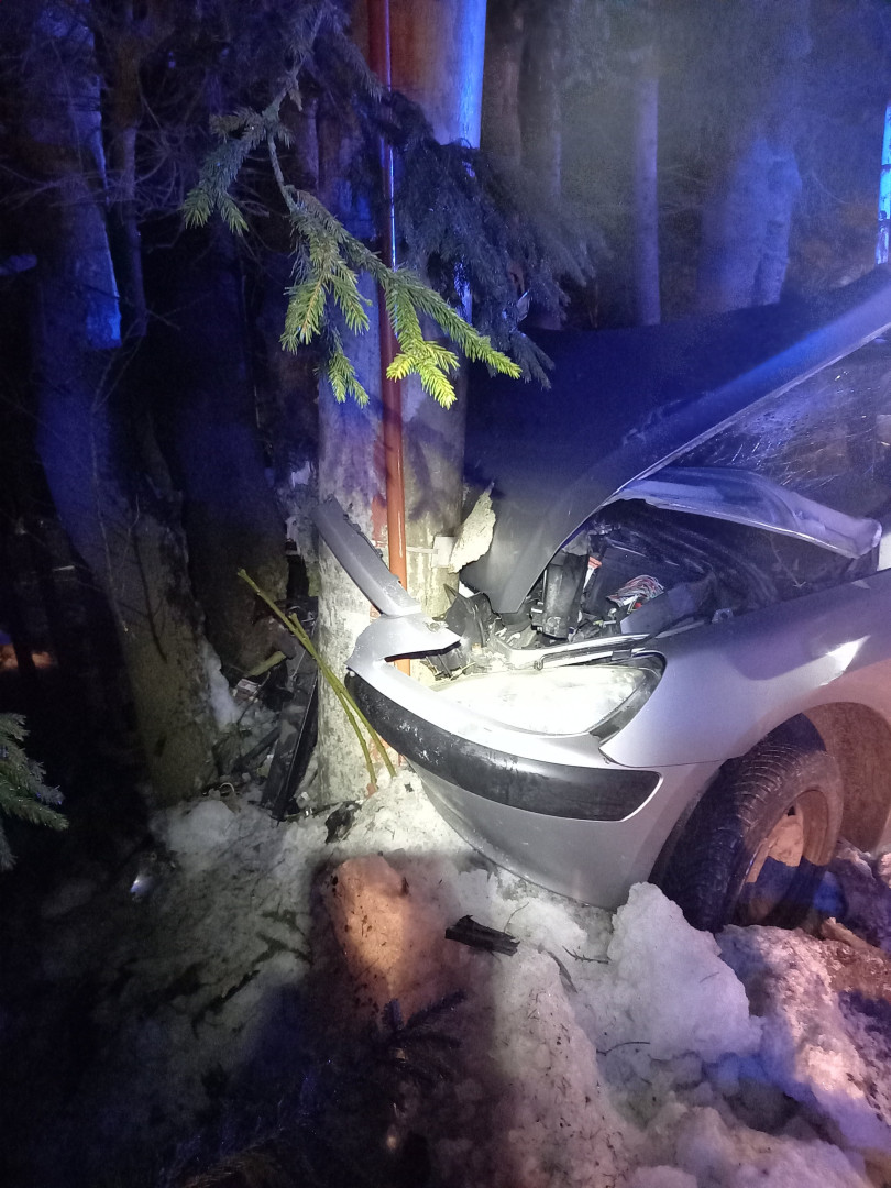 Po čelním nárazu auta do sloupu v Orlických horách dva těžce zranění