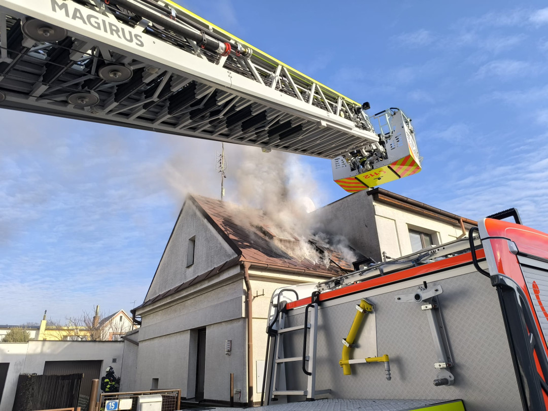 Při požáru rodinného domu v Hradci Králové utrpěli zranění dva hasiči