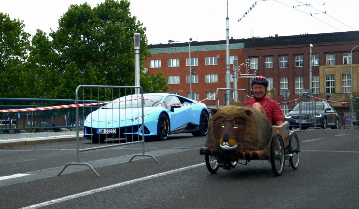 Šlapací vozítka se proháněla Hradcem i za deště. Závod ovládl Francouz