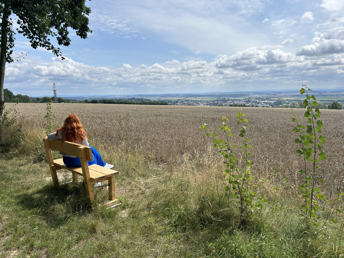 Nové lavičky na Chlumech u Hořic. Jedna funguje jako nápojový bar