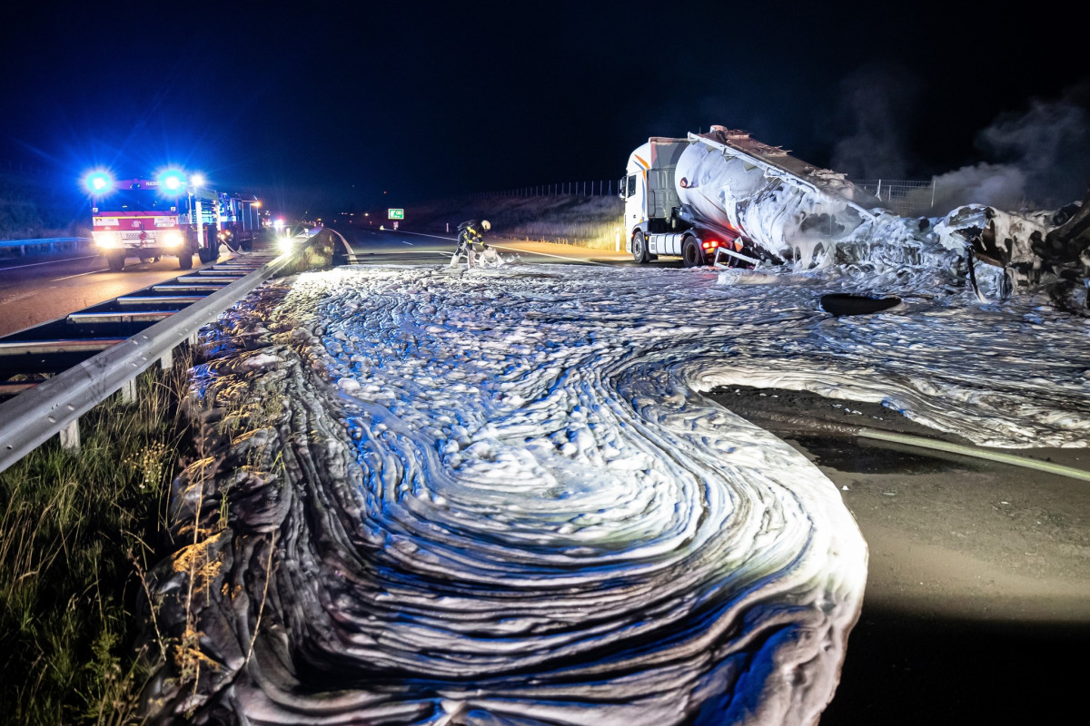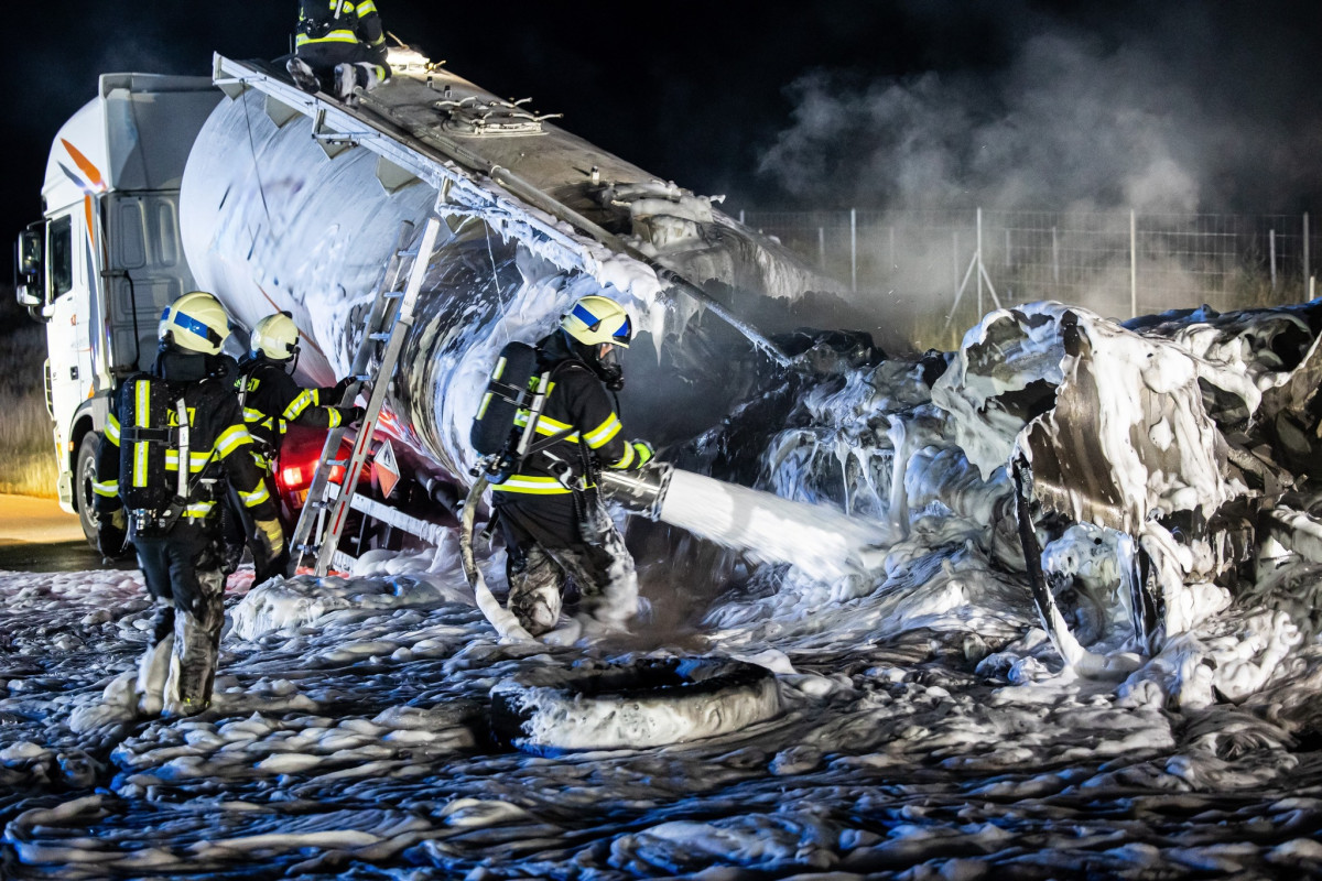 Dálnice D11 je po nočním požáru cisterny a po patnáctihodinové uzavírce znovu průjezdná