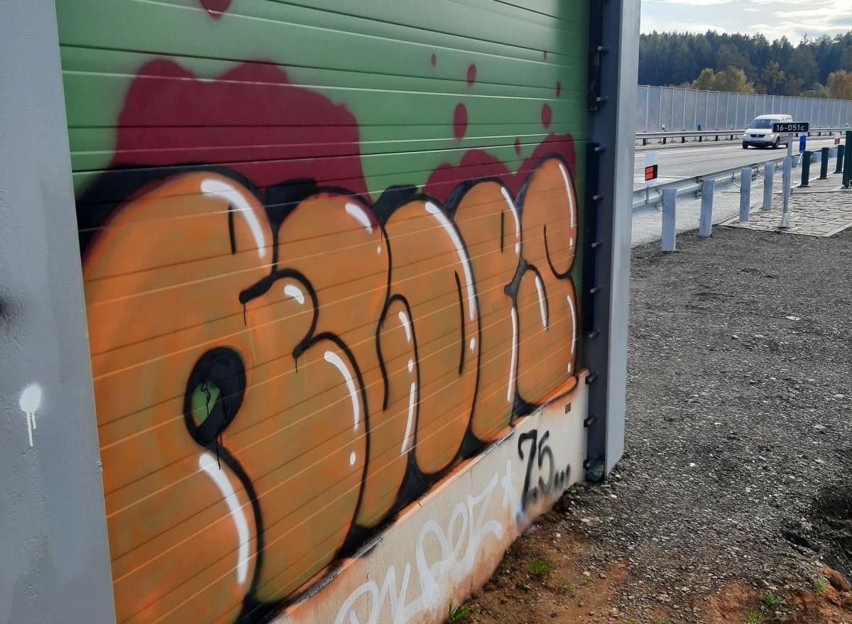 V Nové Pace to schytala protihluková stěna, policisté chystají sprejera
