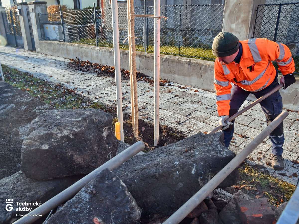 Hradečtí technici při výsadbě stromů čelí nečekaným nástrahám. Zakopané suti a odpadu
