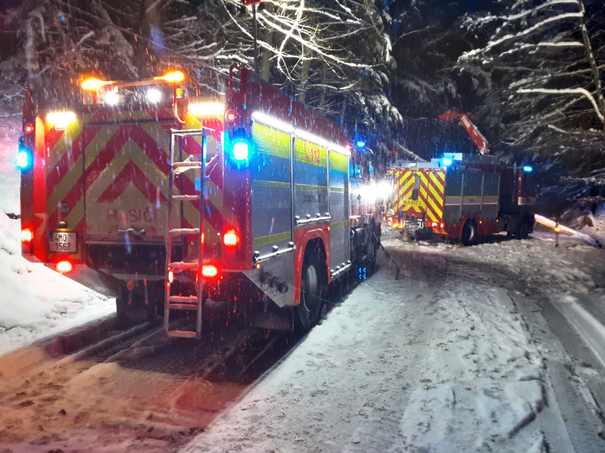 V Královéhradeckém kraji sněží. Na Jičínsku a Rychnovsku uvázly kamiony
