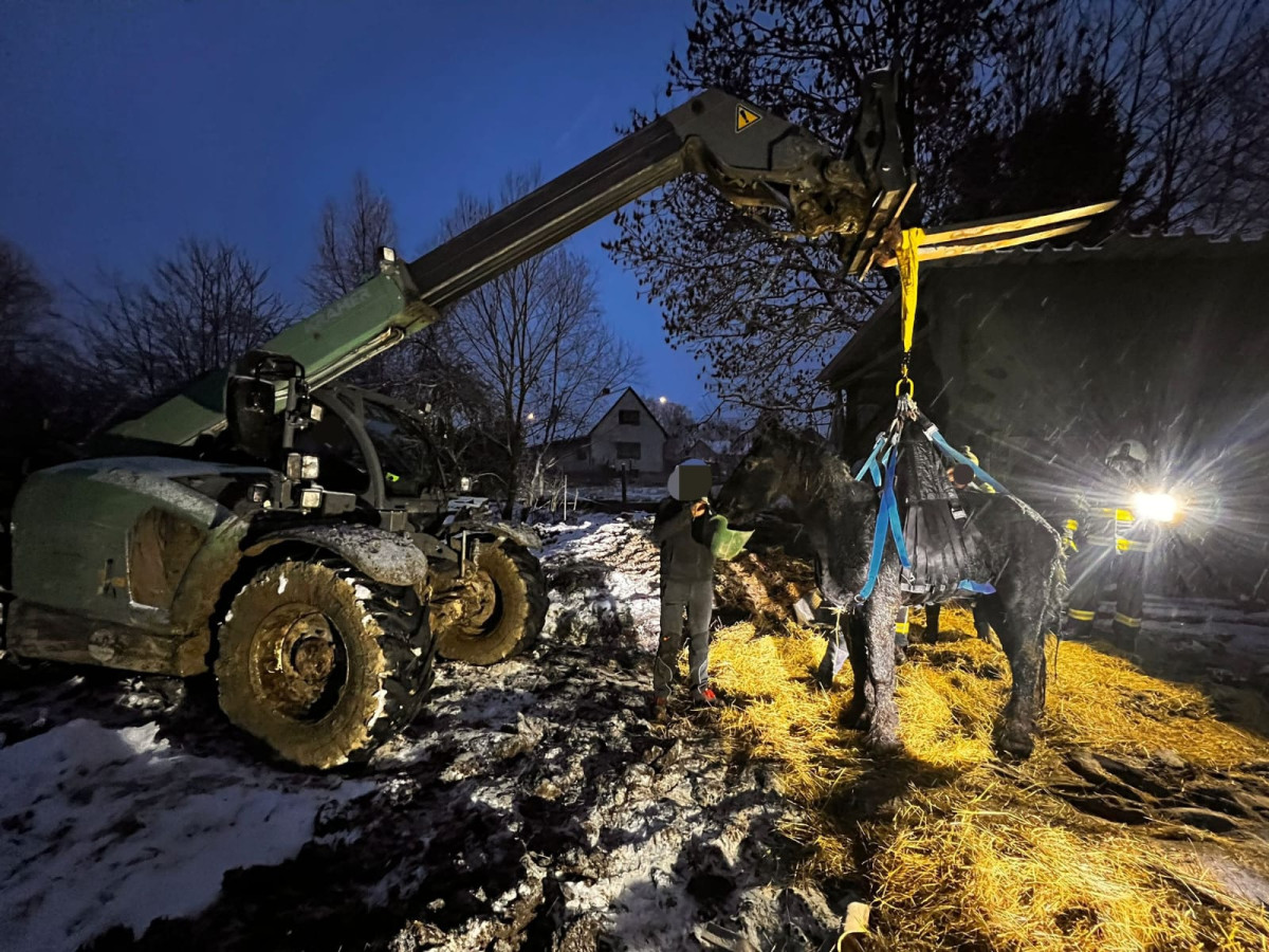 Na pomoc zesláblému koni do Rohoznic u Hořic museli přijet speciálně proškolení hasiči