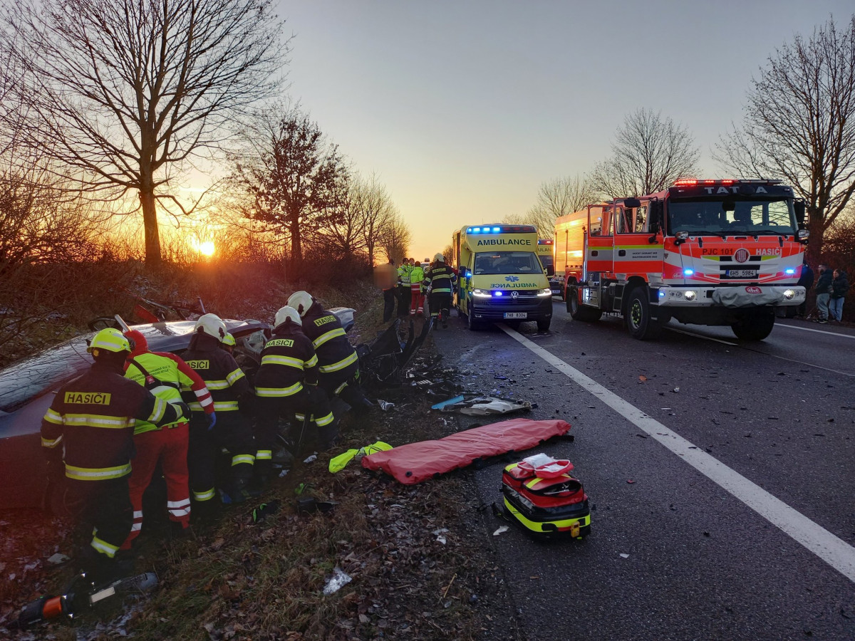 Při srážce tří aut u Úlibic na Jičínsku se zranilo osm lidí. Jeden člověk vážně