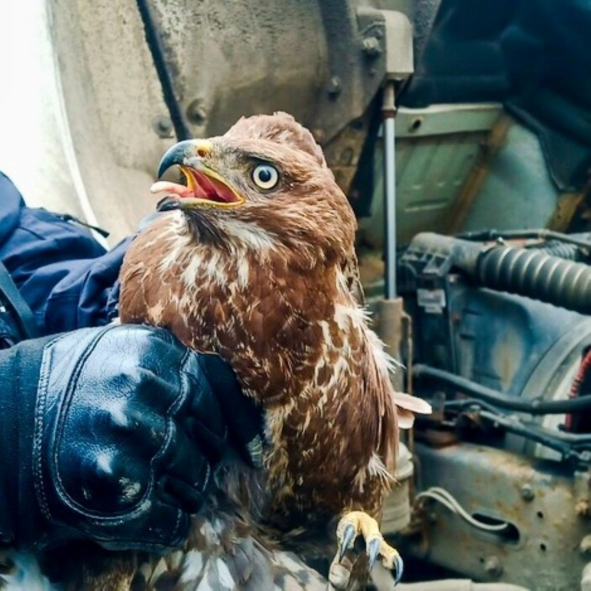 Káně lesní si z Lanškrouna do Hradce stoplo náklaďák