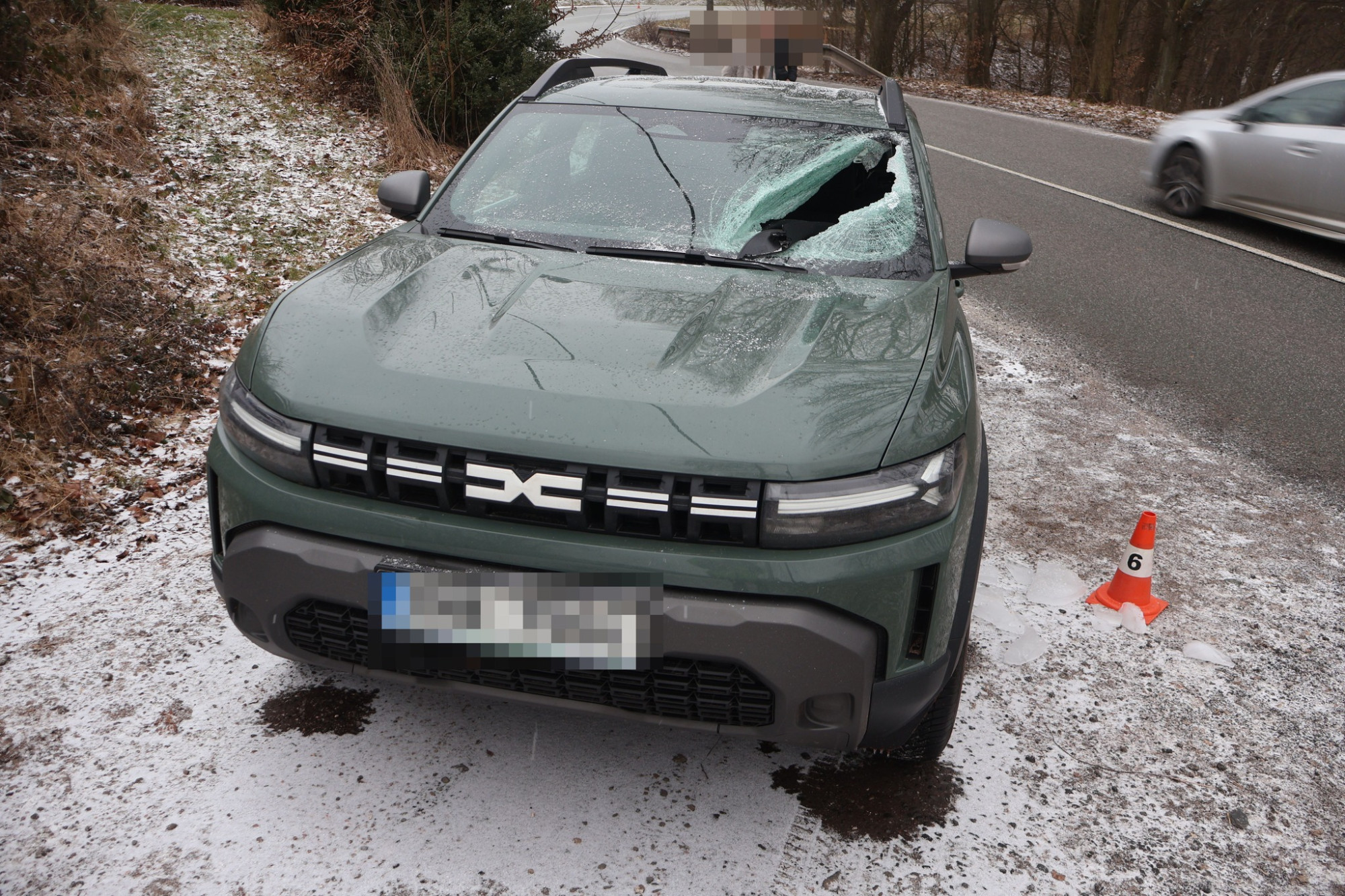 Z kamionu u Dvora Králové odlétl ledový projektil, trefil projíždějící Dacii, řidič se podruhé narodil
