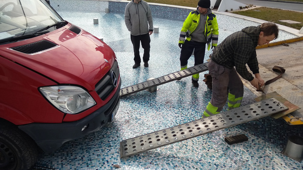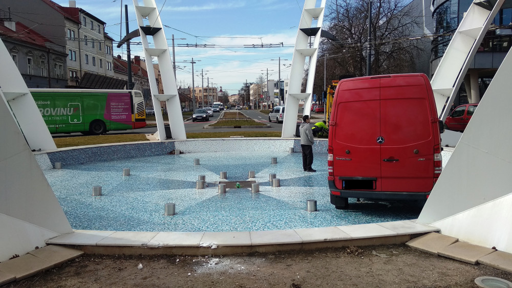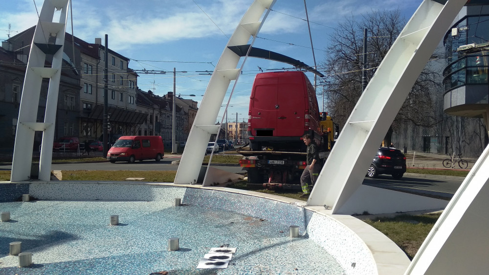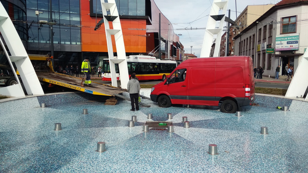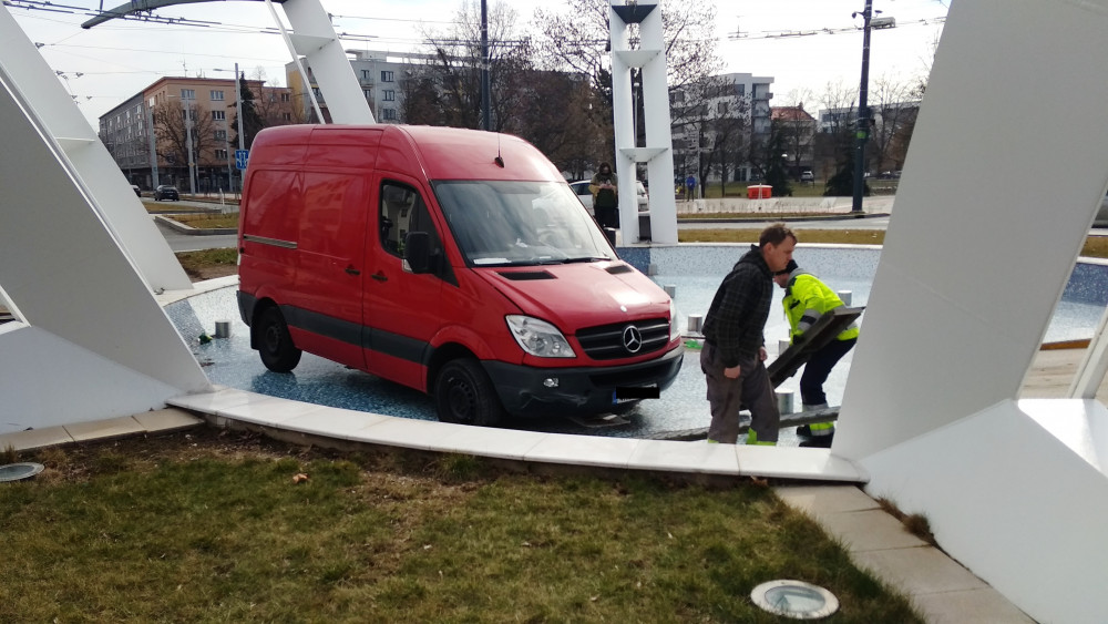 Škoda za 250 tisíc! U Auparku vjela dodávka do kašny