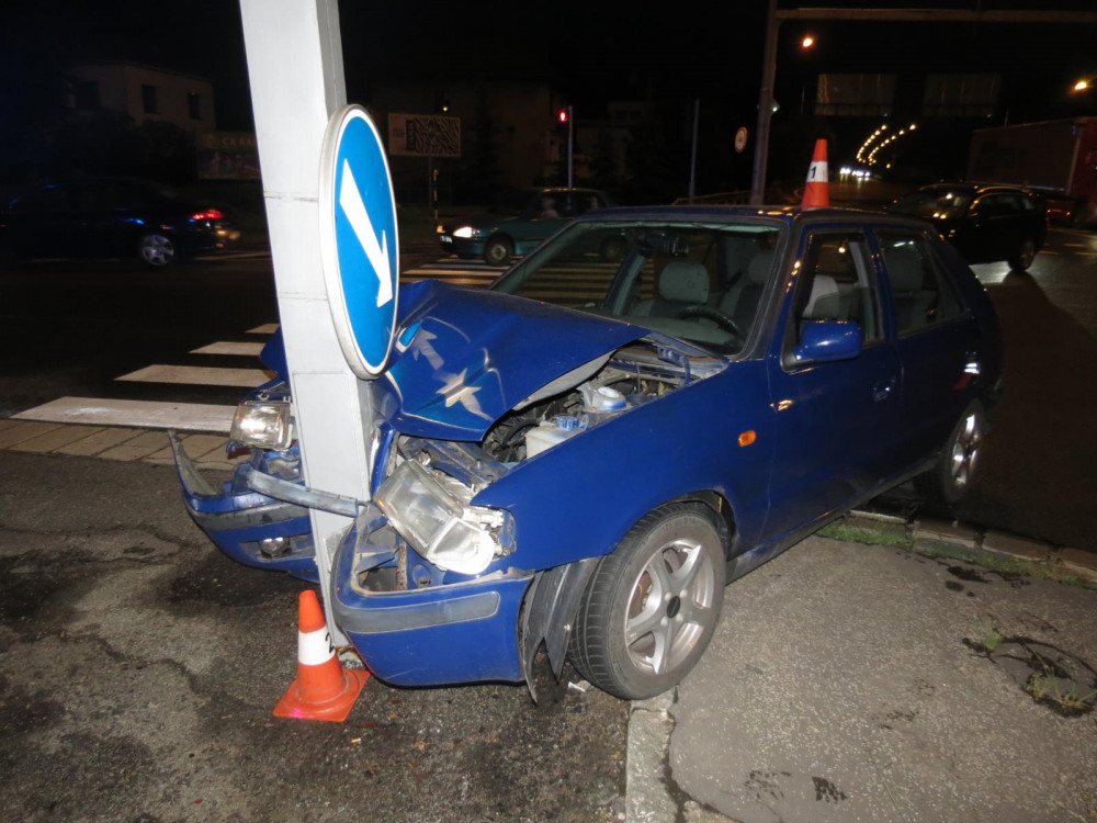Řidič jel na Gočárově okruhu příliš rychle, dostal smyk a narazil do sloupu.