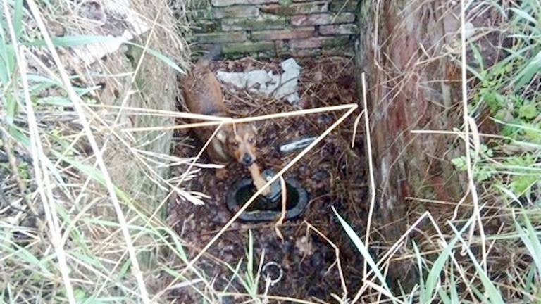 Štěně spadlo do dvoumetrové jámy, ven mu pomohli strážníci