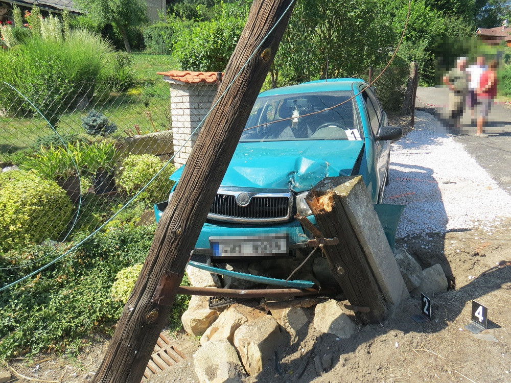 Řidič usnul za volantem a naboural do sloupu. Utržený drát zapálil trávu u silnice