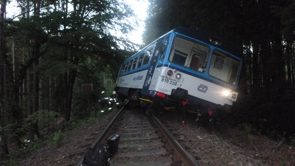 FOTO: Vlak u Nové Paky narazil do stromu a vykolejil
