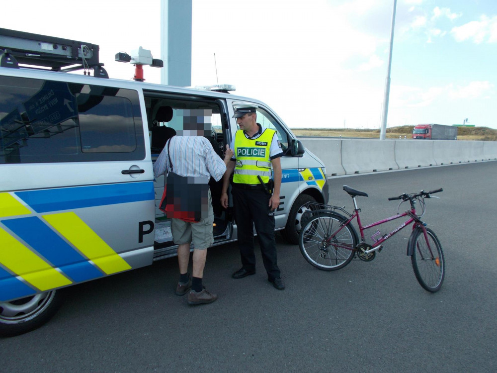 FOTO: Po dálnici se proháněl cyklista na kole. Dvaadevadesátiletého muže dostali do bezpečí policisté