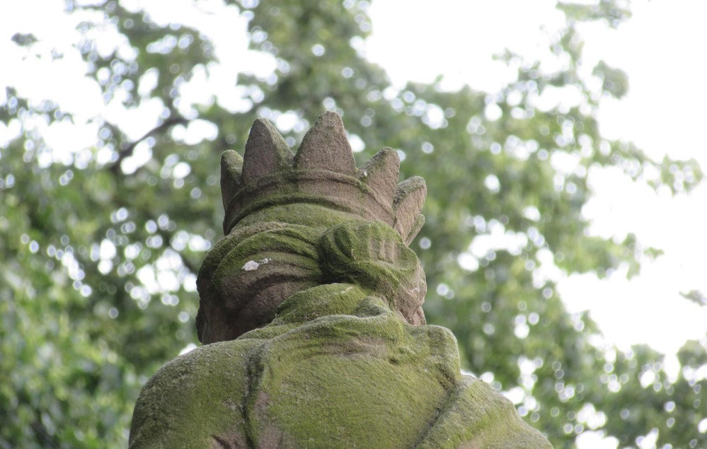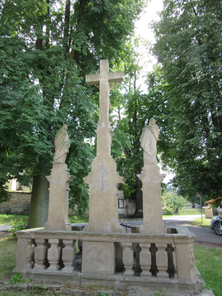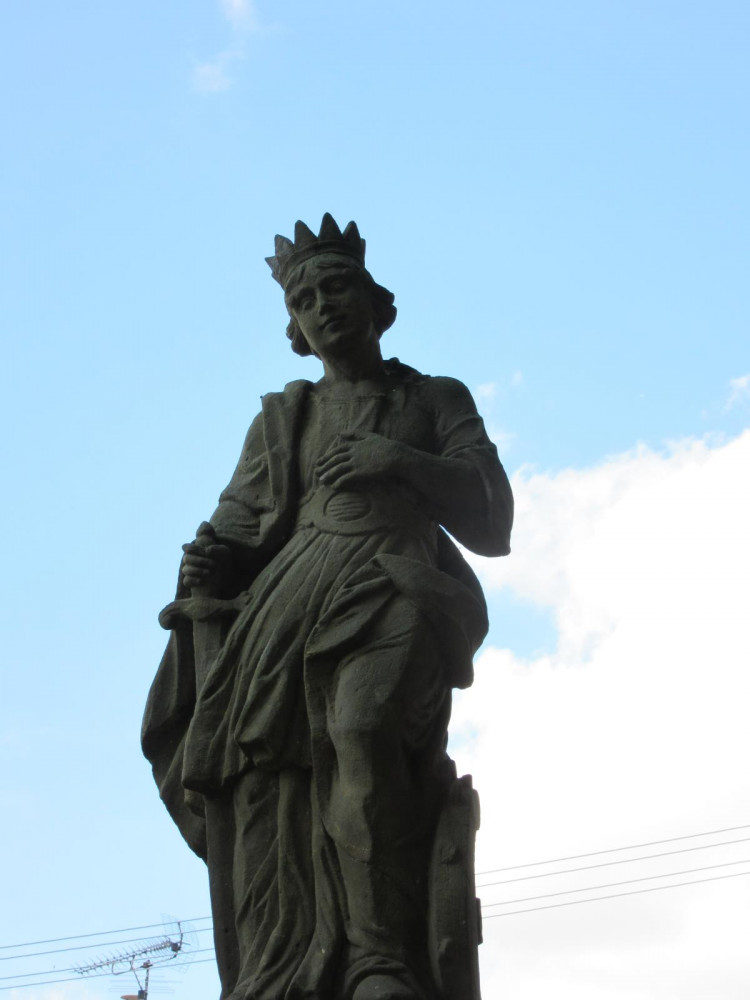 FOTO: Starší muž vylezl na sousoší svatých a rovnal jim svatozáře