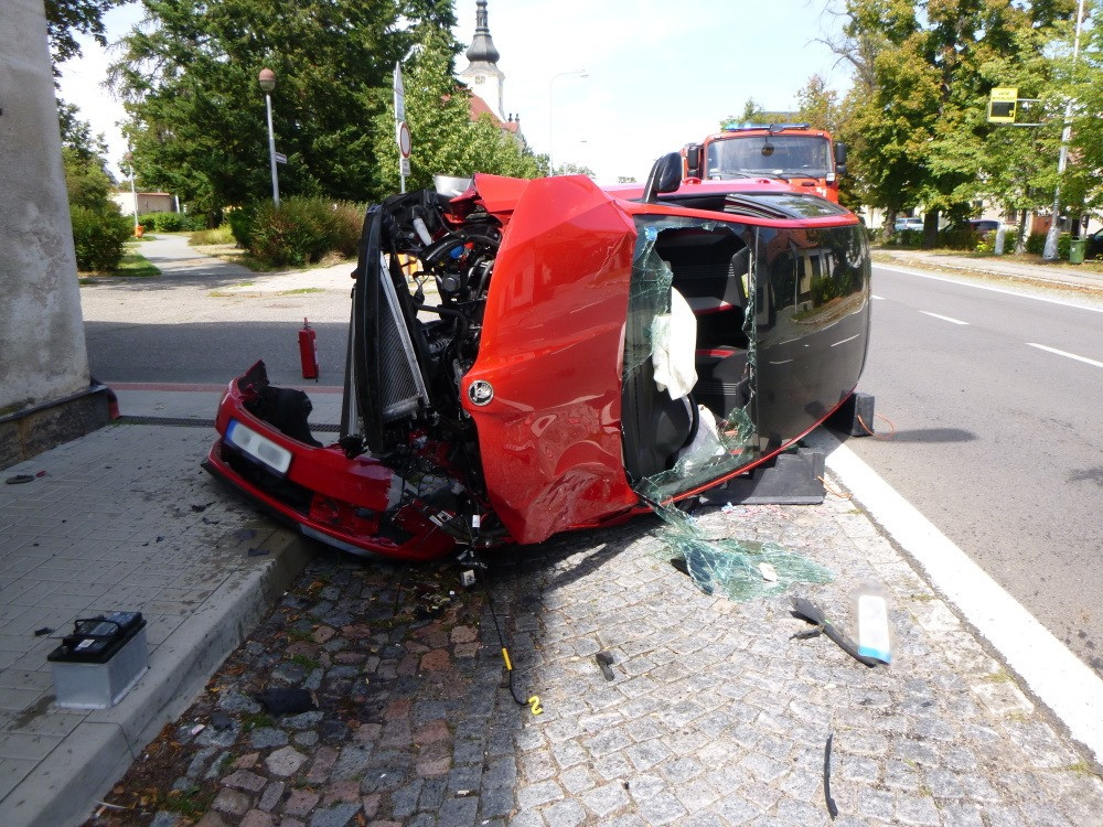 FOTO: Vážná nehoda na Novém Hradci. Auto skončilo po nárazu na boku